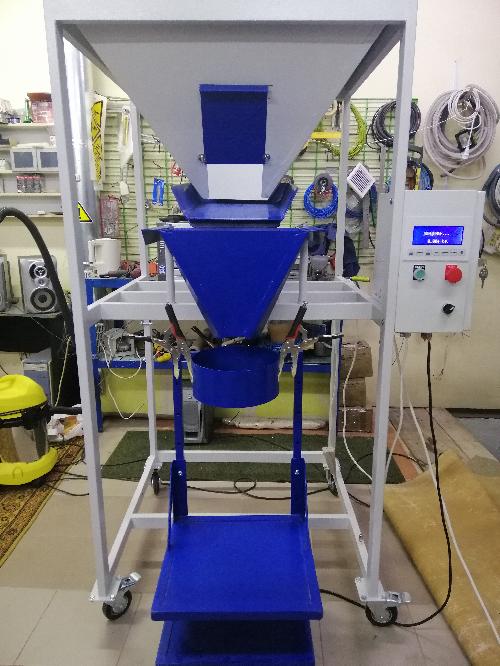 Дозатор , фасовочный полуавтомат для дозирования в мешки сыпучих продуктов ( пеллеты, гранулы ,зерно и тд. ) на вибролотке установлено сито для просеивания от мелких сорных частиц. Дозирование точное и грубое. Производительность по пеллете 1500кг. Цена 36000грн